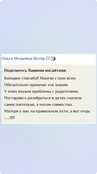 Улучшить взаимопонимание в семье, убрать блоки в общении;